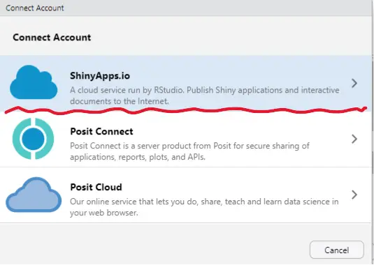 In this example, we will learn how to deploy using the ShinyApps.io.