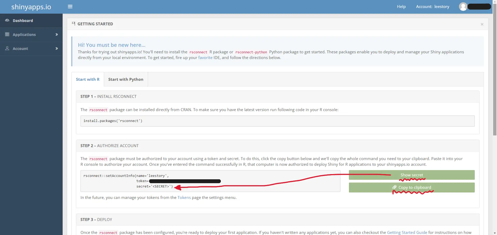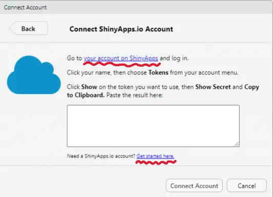 Click on the Get started here or the your account on ShinyApps link as shown below (Figure 4).